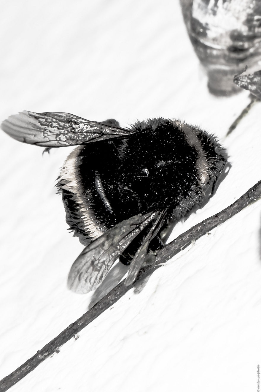 Mise en scène: un bourdon-un escargot. Des photographies décalées. Un instant de leur temps. Puis, ils sont repartis ...